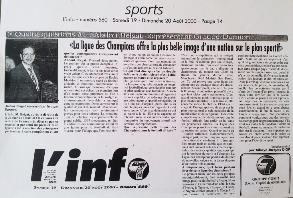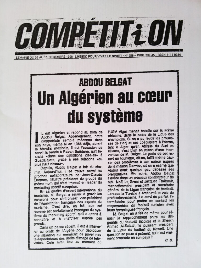 Ancien Ambassadeur du Groupe Accor et Directeur en charge des projets spéciaux Afrique-Moyen-Orient, Abdou Belgat est aujourd’hui président-fondateur de B.C.Consulting (cabinet d’audit et d’expertise)., il est également le vice-président de l’Association Francophone des Experts et Scientifiques du Tourisme(AFEST) et l’un des premiers responsables de l’Association Mondiale pour la Formation Touristique et Hôtelière(AMFTH). Passionné de football, pour avoir œuvré durant des années au sein du Groupe Darmon, Leader européen de la communication par le sport, il est reconnu comme un expert du football notamment du foot africain et des coulisses de la CAF.